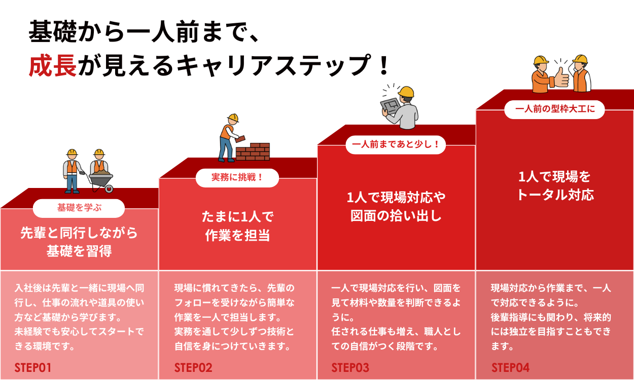現場を通して徐々にステップアップできるので、未経験でも安心。